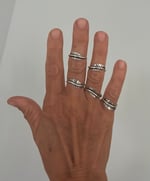 These are either all sterling or all brass and made adjustable to fit any of your fingers.