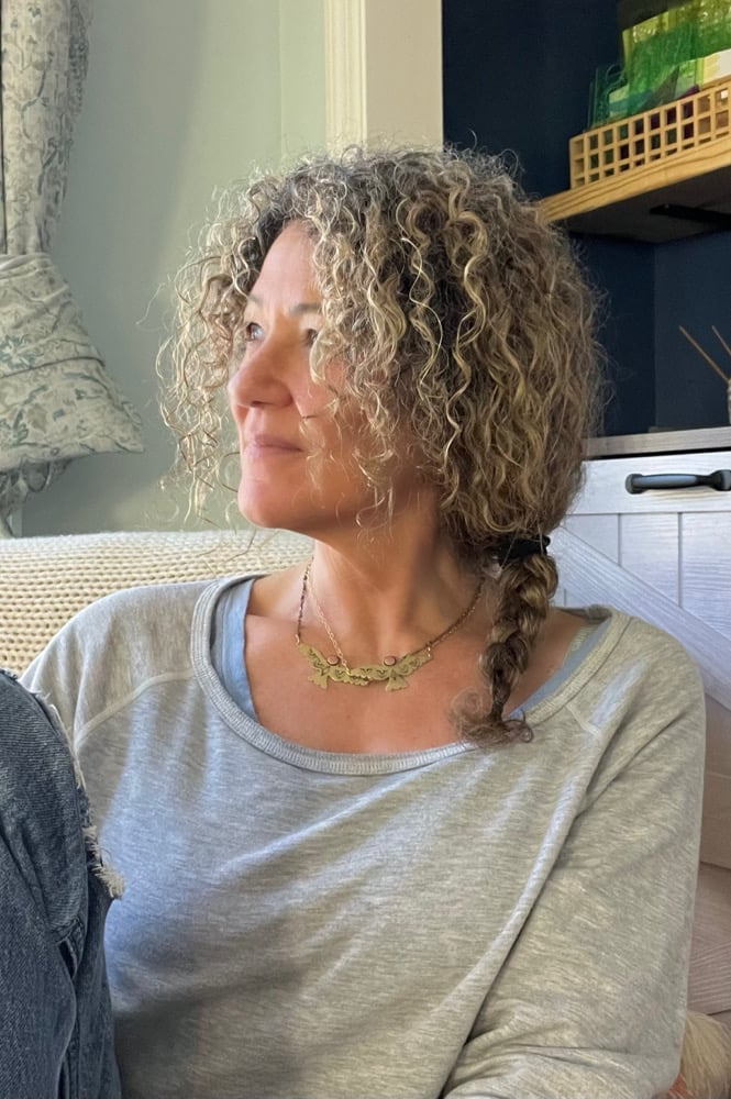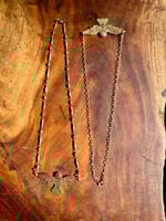 16” chain in either antiqued brass or gold plate.